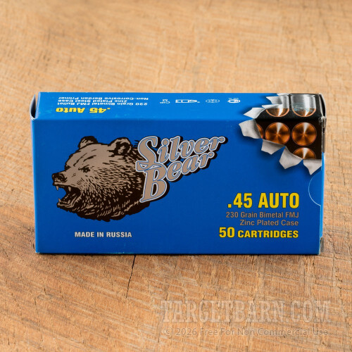 Silver Bear 45 ACP Ammunition - 50 Rounds of 230 Grain FMJ
