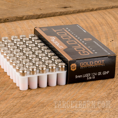 Speer Gold Dot LE 9mm Luger Ammunition - 50 Rounds of 124 Grain JHP