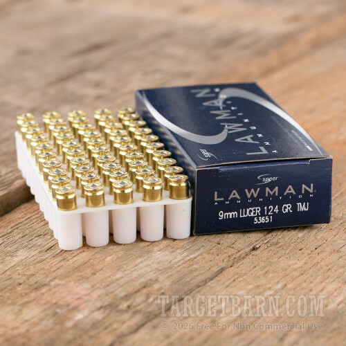 Speer Lawman 9mm Luger Ammunition - 50 Rounds of 124 Grain TMJ
