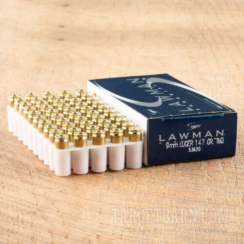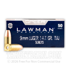 Speer Lawman 9mm Luger Ammunition - 50 Rounds of 147 Grain TMJ