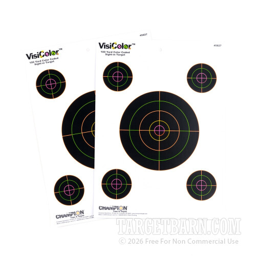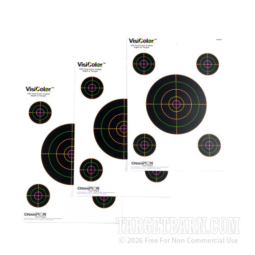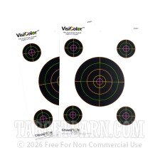 VisiColor 8 Inch Bullseye Target with Four Extra 3 Inch Bullseyes - Multi-Color Reactive - Champion - 10 Count
