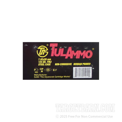 Tula Value Pack 7.62x39 Ammunition - 1000 Rounds of 124 Grain FMJ