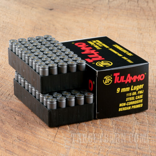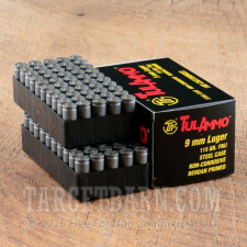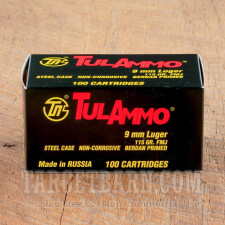 Tula 9mm Luger Ammunition - 100 Rounds of 115 Grain FMJ