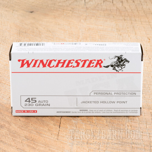 Winchester 45 ACP Ammunition - 50 Rounds of 230 Grain JHP