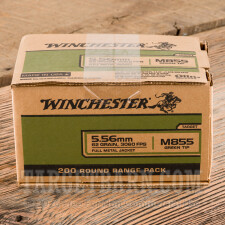Winchester 5.56x45 Ammunition - 200 Rounds of 62 Grain FMJ M855