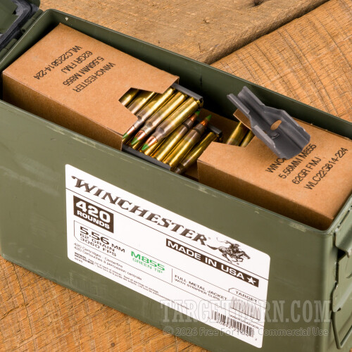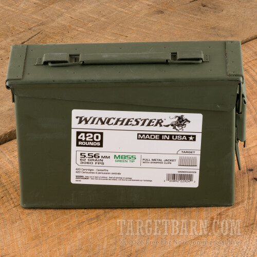 Winchester 5.56x45 Ammunition in Ammo Can - 420 Rounds of 62 Grain FMJ M855