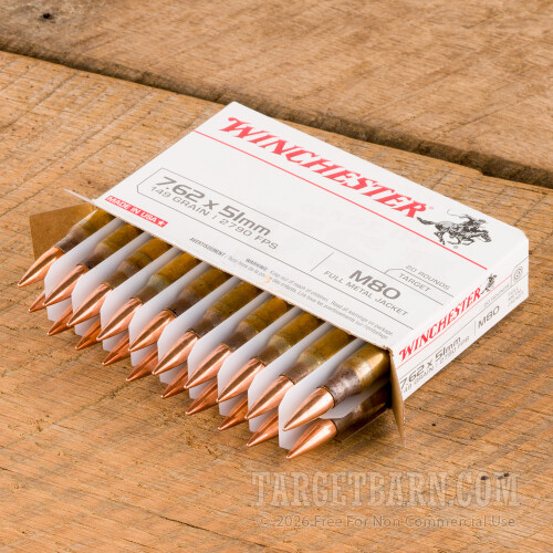 Winchester 7.62x51 Ammunition - 500 Rounds of 149 Grain FMJ M80