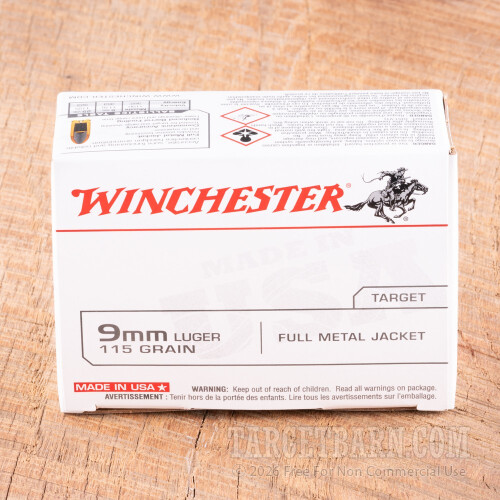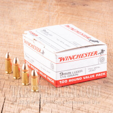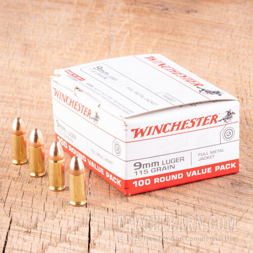 Winchester 9mm Ammunition - 100 Rounds of 115 Grain FMJ