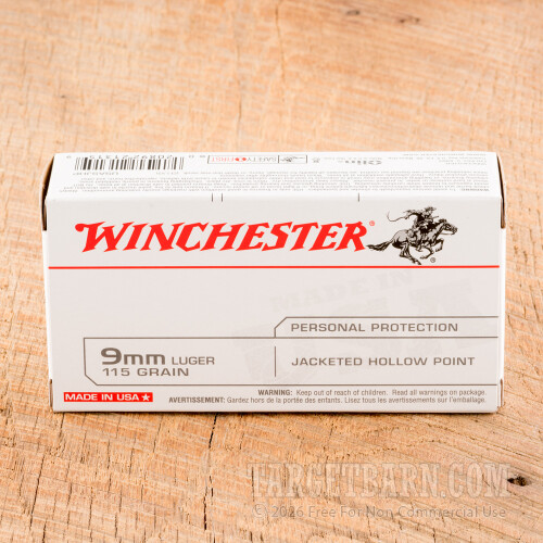 Winchester 9mm Luger Ammunition - 50 Rounds of 115 Grain JHP