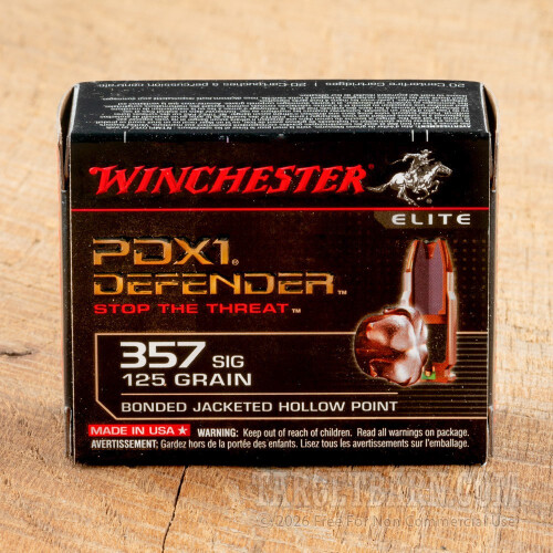 Winchester Elite PDX1 Defender 357 Sig Ammunition - 20 Rounds of 125 Grain Bonded JHP