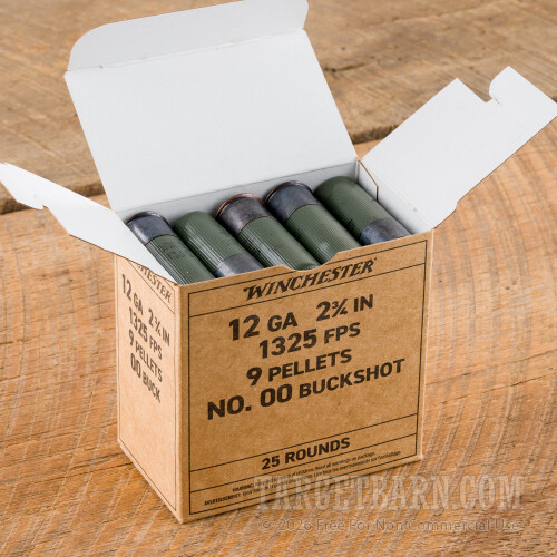 Winchester Military Grade 12 Gauge Ammunition - 250 Rounds of 2-3/4" 9 Pellets 00 Buckshot
