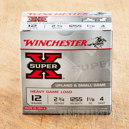 Winchester Super-X 12 Gauge Ammunition - 25 Rounds of 2-3/4" 1-1/8 oz. #4 Shot