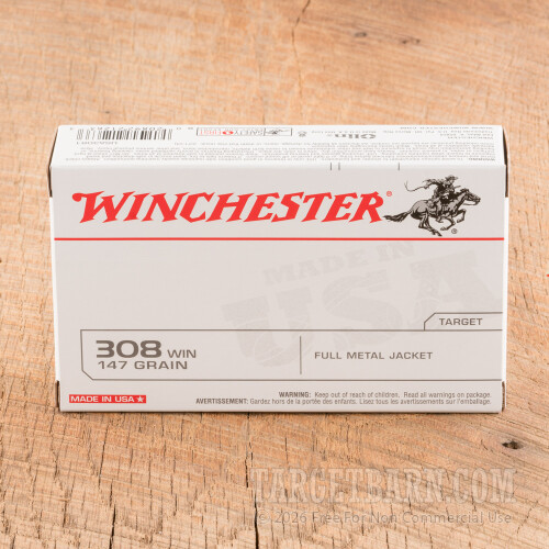 Winchester Target 308 Winchester Ammunition - 20 Rounds of 147 Grain FMJ