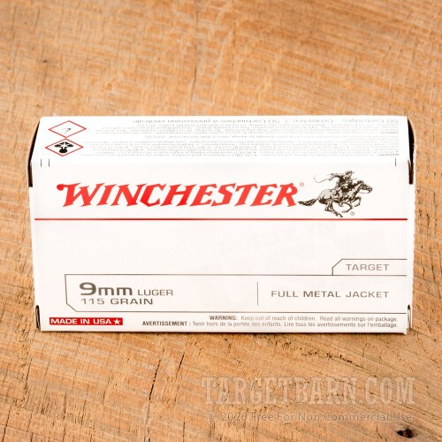Winchester Target 9mm Luger Ammunition - 50 Rounds of 115 Grain FMJ