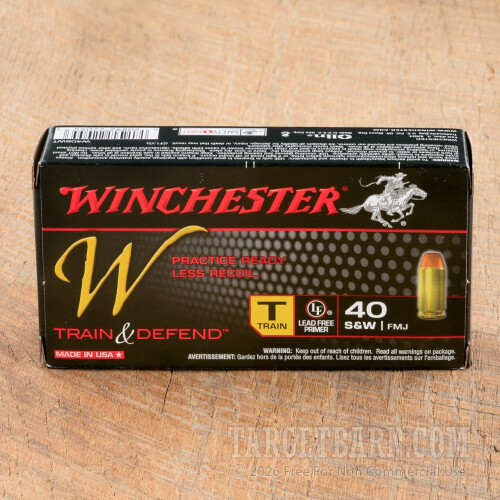 Winchester Train & Defend 40 S&W Ammunition - 50 Rounds of 180 Grain FMJ