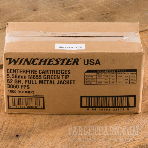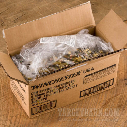 Winchester USA 5.56x45 Ammunition - 1000 Rounds of 62 Grain FMJ M855