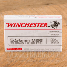 Winchester USA 5.56x45 Ammunition - 20 Rounds of 55 Grain FMJ M193