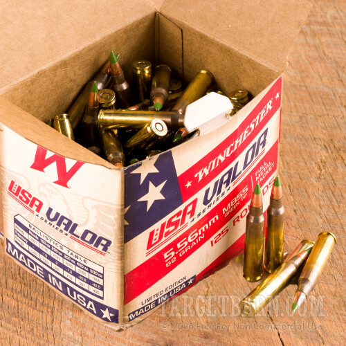 Winchester USA VALOR 5.56x45 Ammunition - 1250 Rounds of 62 Grain FMJ M855