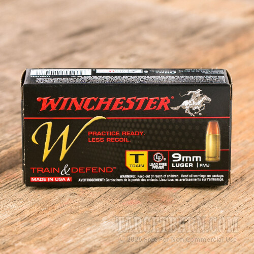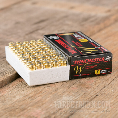 Winchester W Train and Defend 9mm Luger Ammunition - 500 Rounds of 147 Grain FMJ
