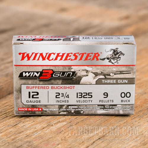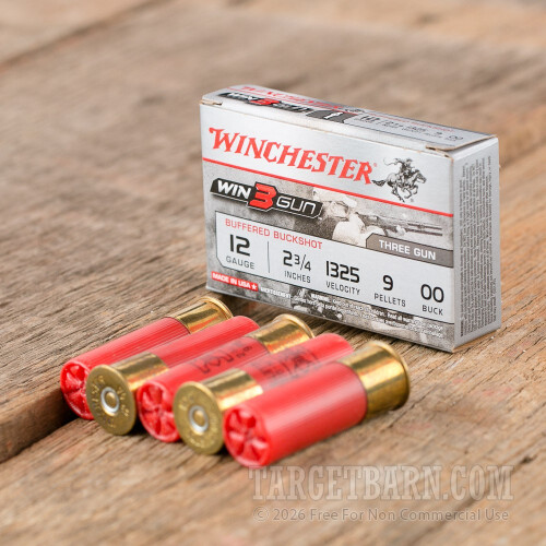 Winchester Win3Gun 12 Gauge Ammunition - 5 Rounds of 2-3/4" 00 Buck Shot