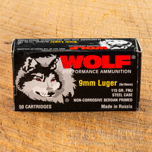 Wolf 9mm Ammunition - 1000 Rounds of 115 Grain FMJ