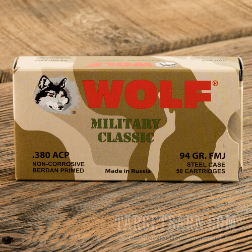 Wolf WPA Military Classic 380 ACP Ammunition - 50 Rounds of 94 Grain FMJ